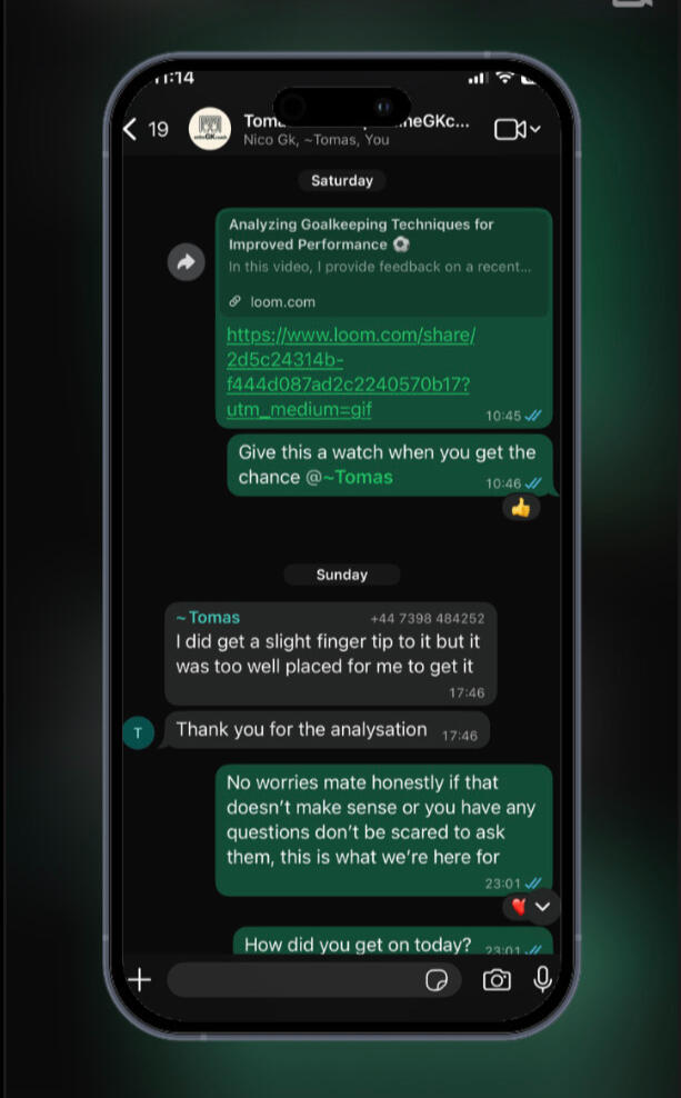 Direct WhatsApp access for parents and goalkeepers to ask questions, share clips, and get reassurance between sessions so you’re never left wondering what to do next.